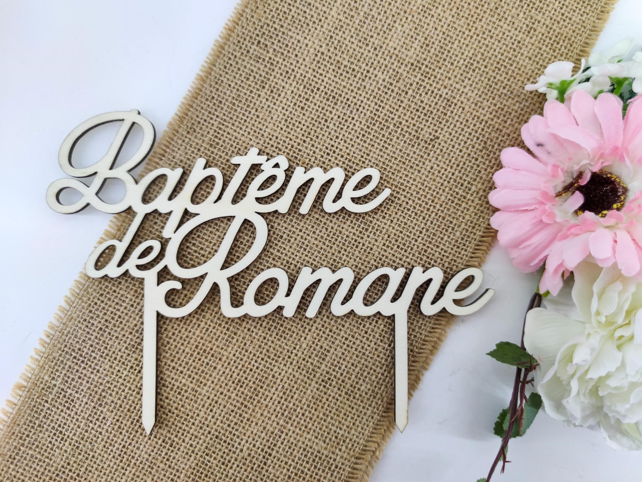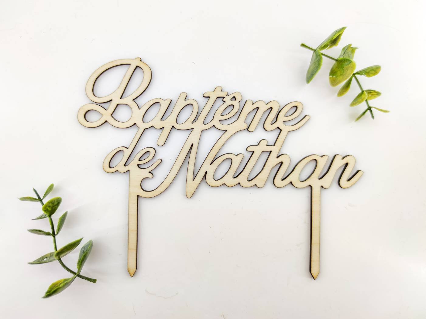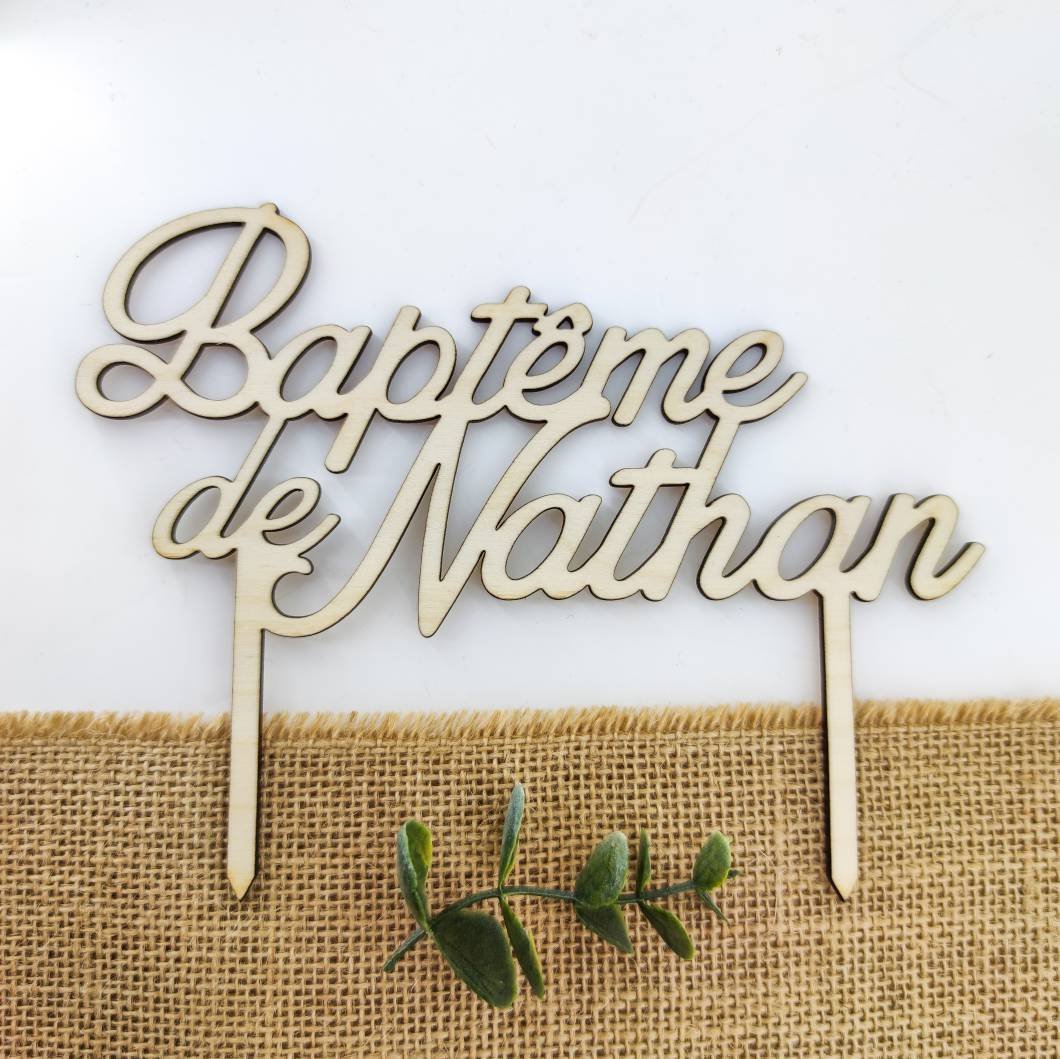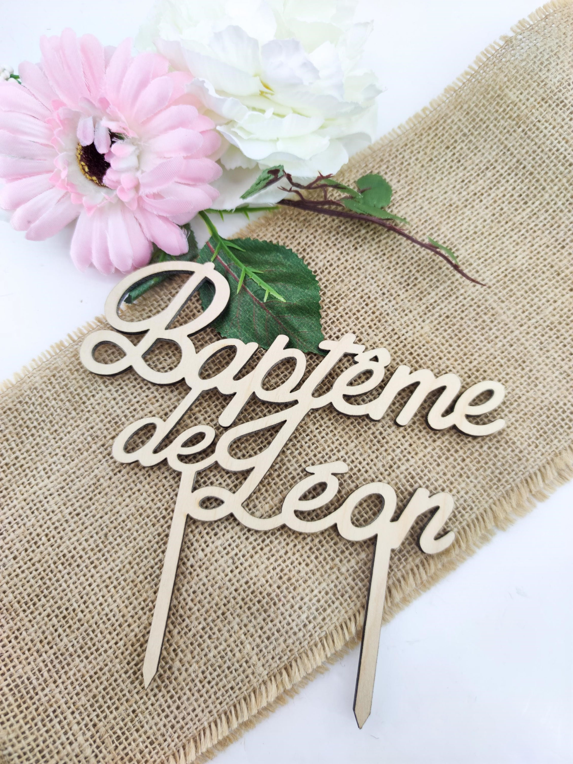 Personnalisez le dessert de votre enfant baptisé avec ce cake topper en bois.