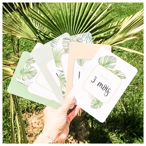 Placer les cartes étapes à côté de votre bébé et faites une photo au moment de son progrès ! En plus, vous pouvez noter tous les progrès de bébé, mois par mois, au dos des cartes mois-anniversaires et les conserver dans un album, ou les assembler sous la forme d’un petit carnet de vie par exemple … De multiples possibilités !