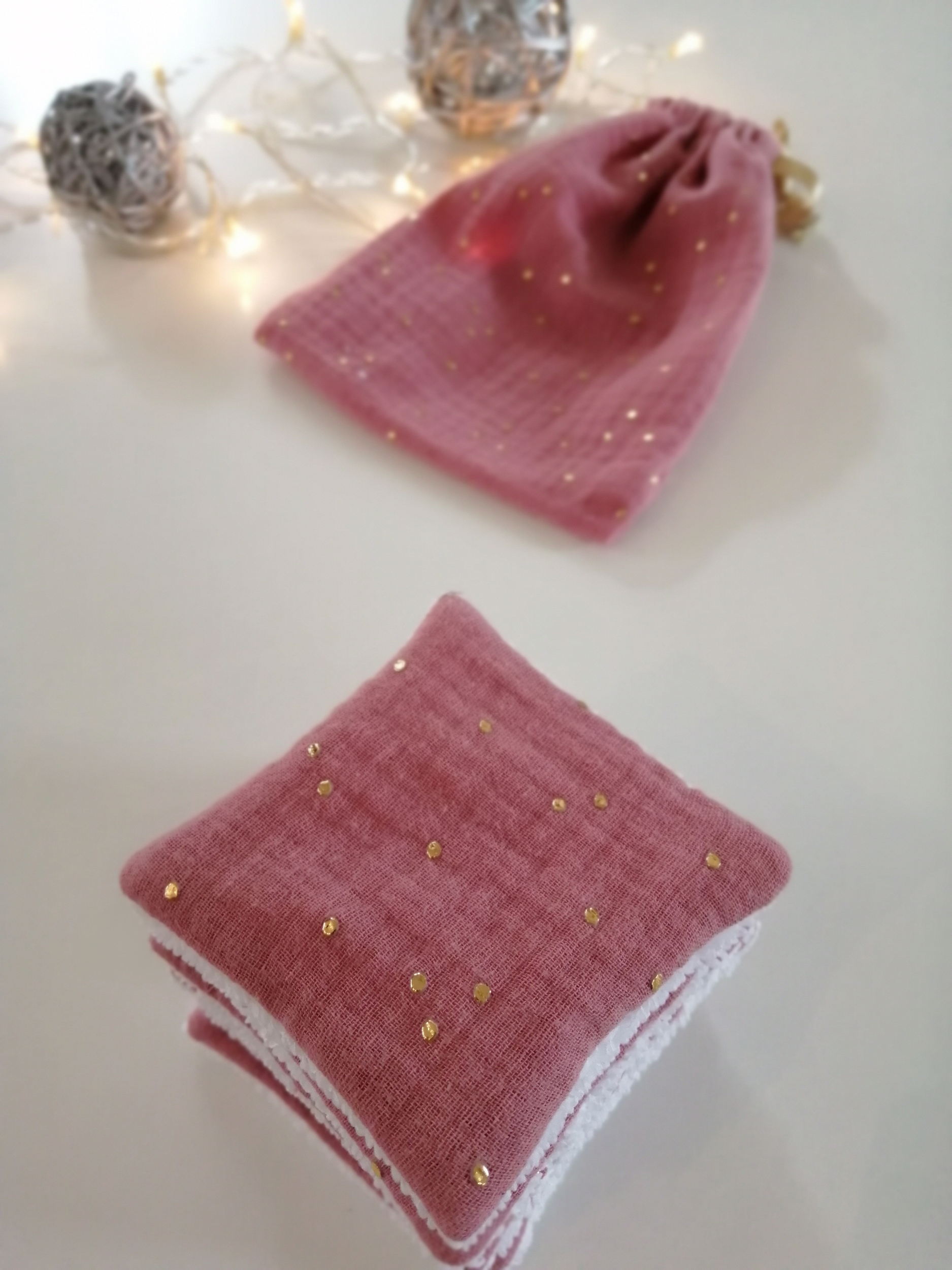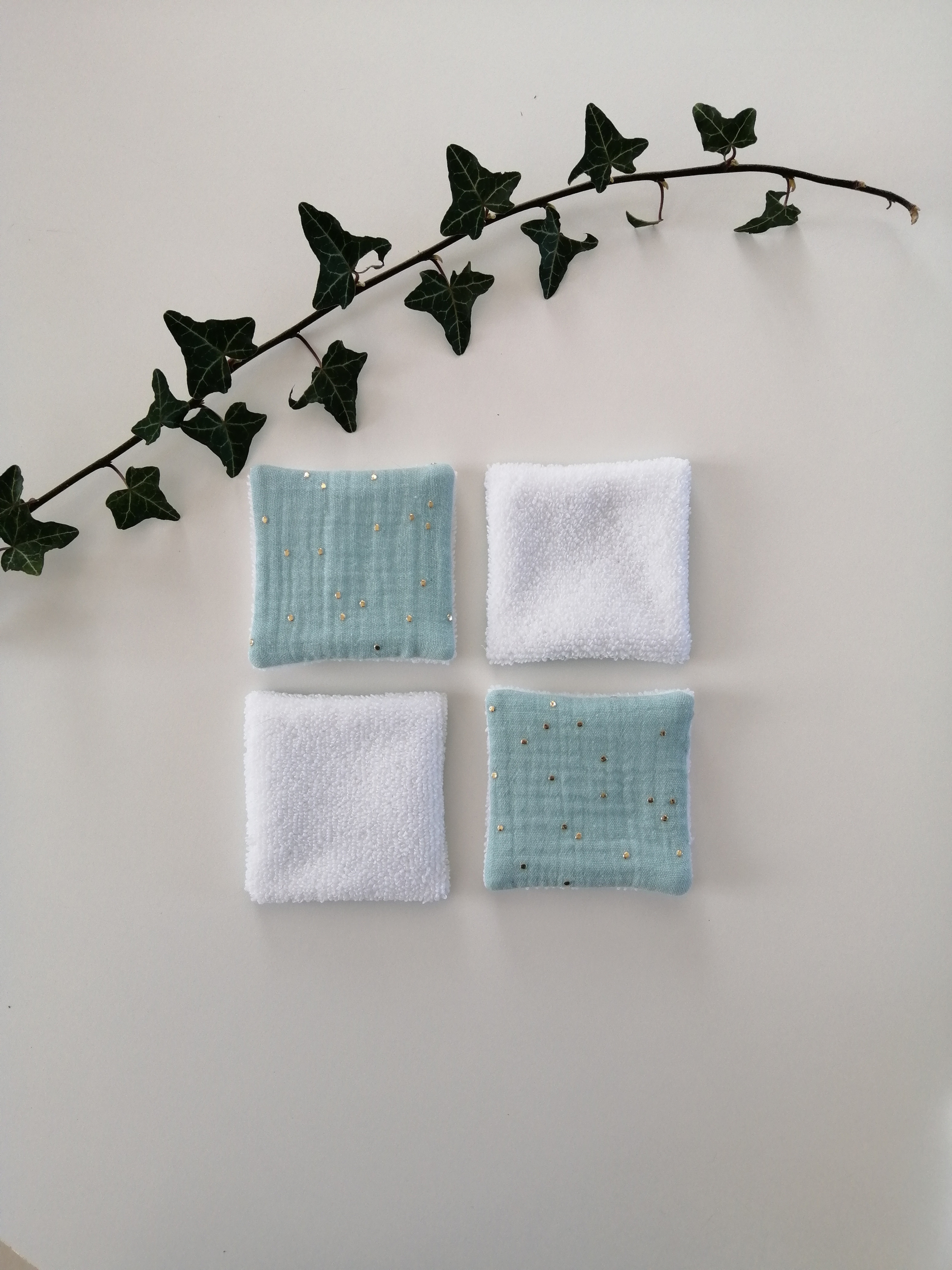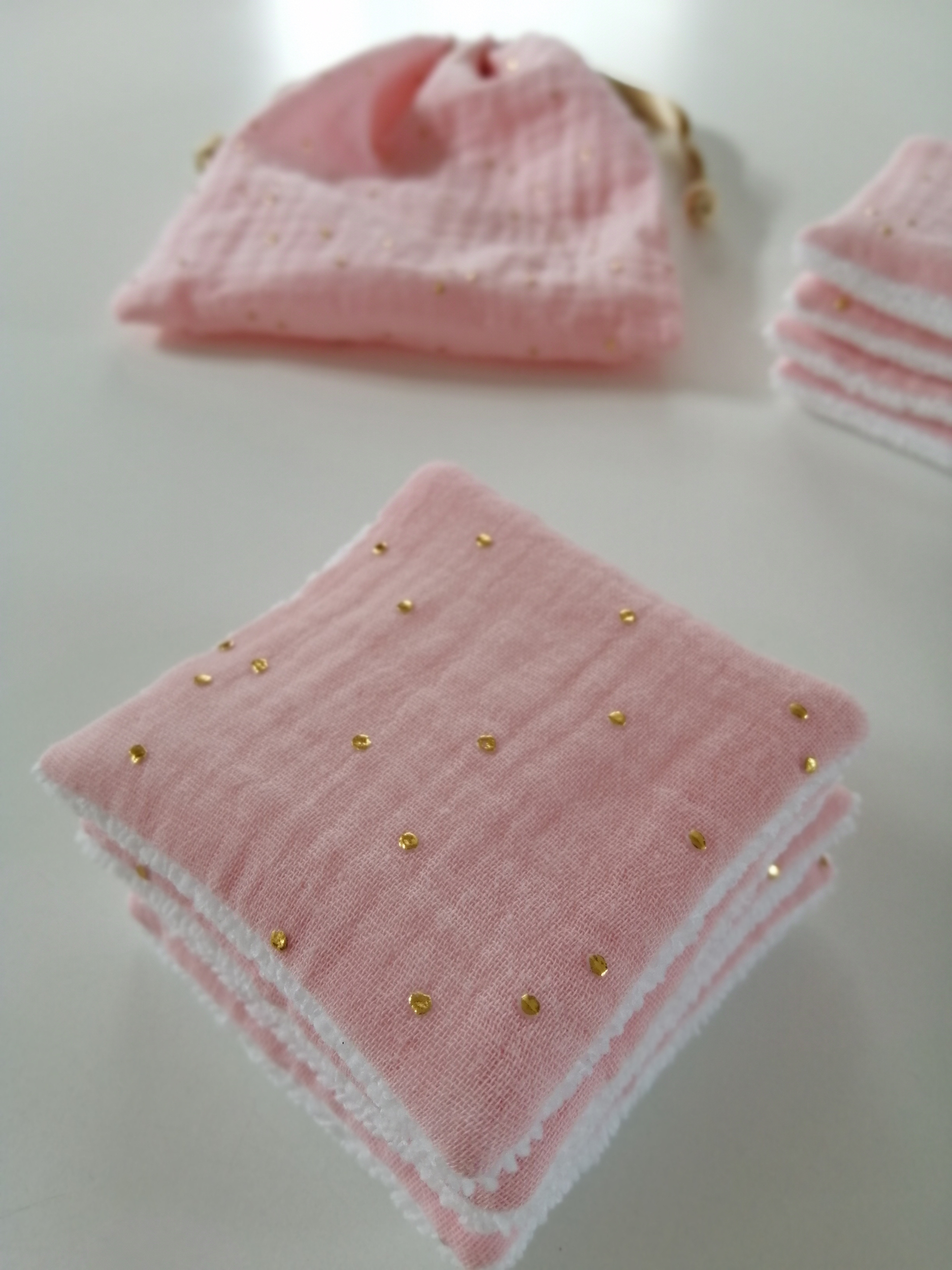Les lingettes démaquillantes lavables sont entièrement faites main. Elles sont composées de 2 carrés de tissu :
